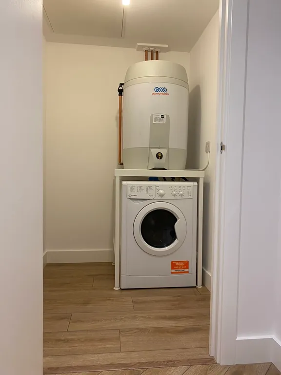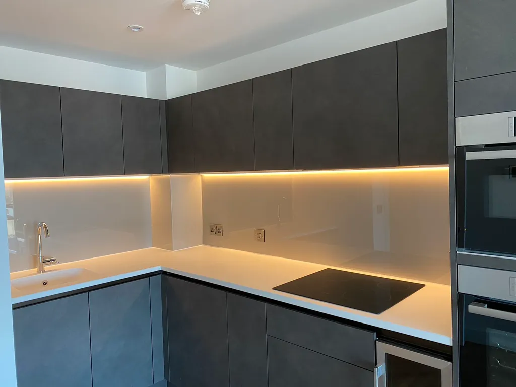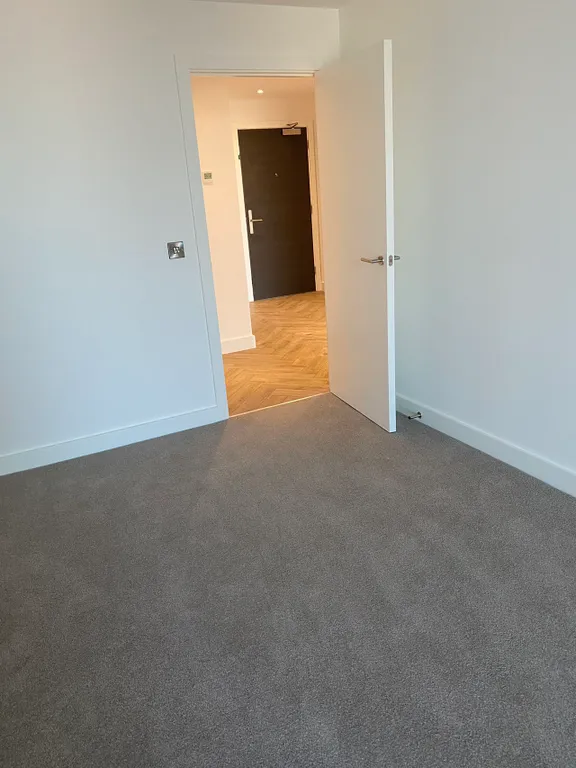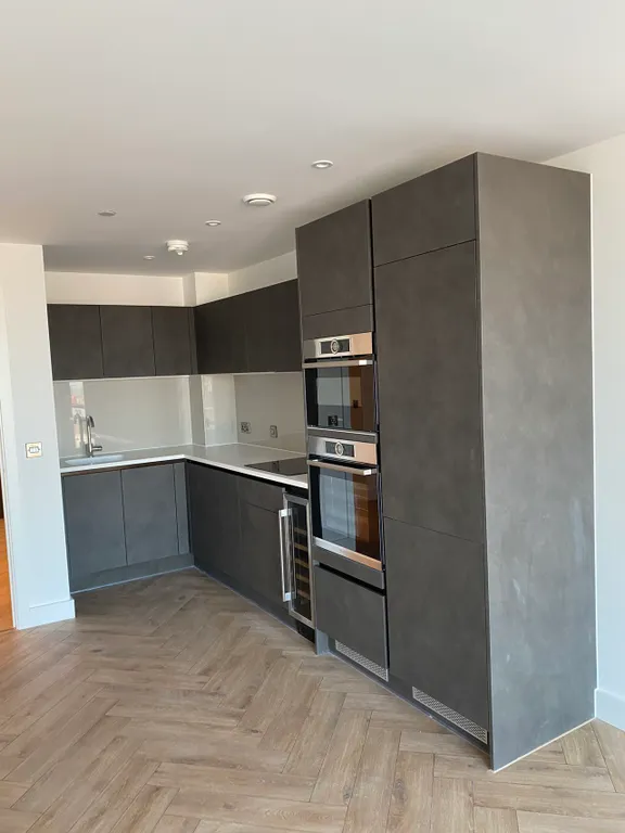 Inside, the apartment boasts an open-plan living and dining space with expansive glazing, a contemporary fitted kitchen with integrated appliances, and a well-proportioned bedroom. The stylish bathroom features quality fixtures and a clean, modern finish.